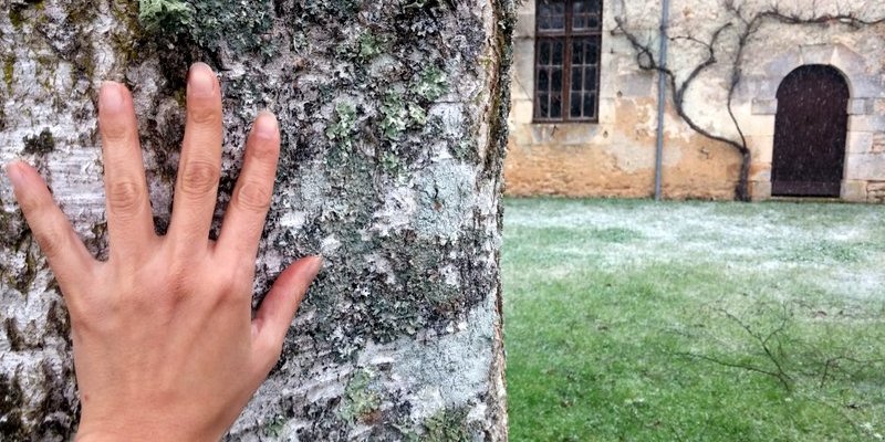 Et cet arbre planté là qui appelle le printemps… La re-naissance… Et ta main comme un signe qui appelle les retrouvailles et danse sur l’écorce… J’entends une musique complice, un rêve, le soleil au coeur, la chaleur…