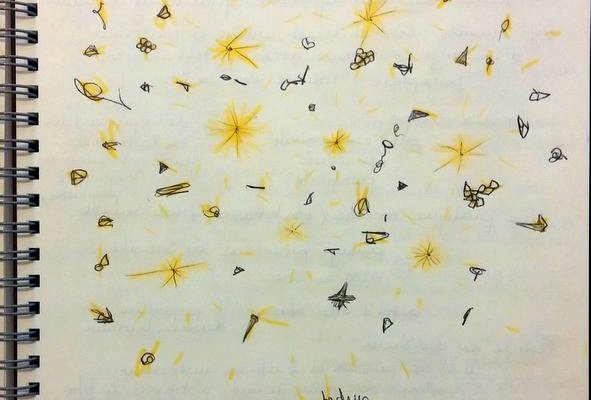 J’ai associé au dessin une phrase que j’aime d’Abhinavagupta**”Il ne s’agit pas de révéler ce qui ne serait pas révélé, il s’agit d’éradiquer l’idée erronée que des êtres lumineux ne brilleraient pas”.