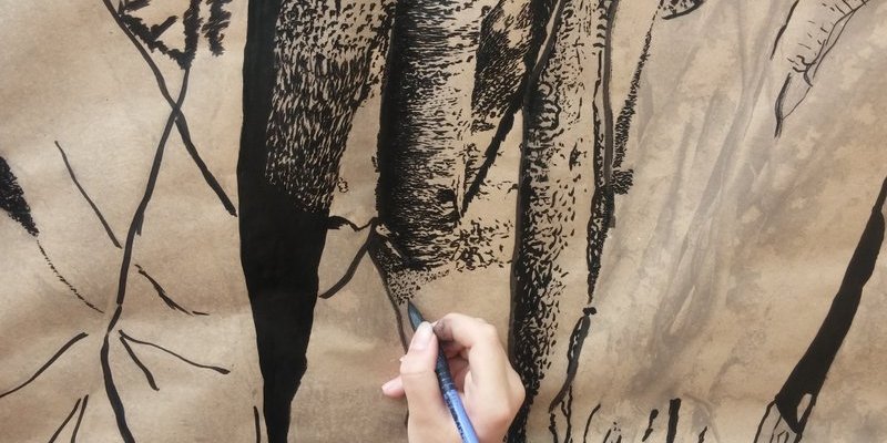 Les 26 et 27 mai 2018, lors des « Grandes médiévales d’Andilly », j’étais aux côtés de l’artiste Cedric Bregnard pour participer à la réalisation guidée d’une œuvre collective. Grâce au geste de leur main, au contact du pinceau et de l’encre de Chine, plusieurs dizaines de participants (environ 250), ont peint l’ombre d’un banyan photographié et imprimé en demi-teinte. En quelques jours, un collectif constitué ex-nihilo a redonné vie à un arbre millénaire.