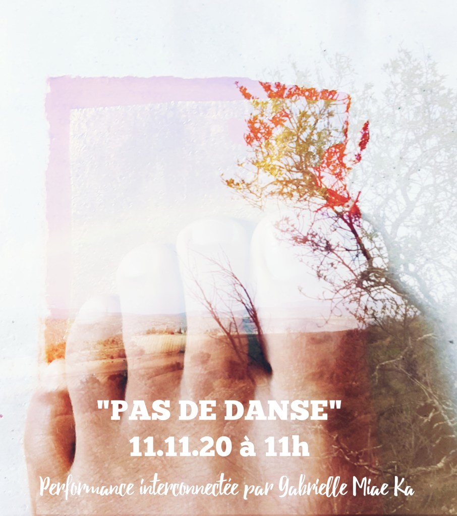 « Interconnecté.e.s » : ça ne signifie pas que nous serons connectés en ligne, l’invitation est de s’interconnecter par l’intention et la présence de chez soi, ou en nature si vous le pouvez. À la fin de la performance à partir de 11h45 il y aura un espace ouvert en ligne pour un partage informel sur un salon messenger de l’événement Facebook « Performance interconnectée Pas de danse ». (La partition de la performance a été retirée après l’événement. )