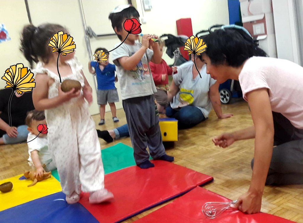 Mère d’un petit garçon en bas âge, j’ai eu la chance d’animer récemment un atelier d’expression corporelle et sensorielle auprès d’enfants âgés de 1 à 3 ans en compagnie de mon ami Marin de Charette. Mon intention était d’explorer avec deux groupes d’enfants la communication non-verbale à travers la découverte mutuelle de gestes, de sons, d’objets.