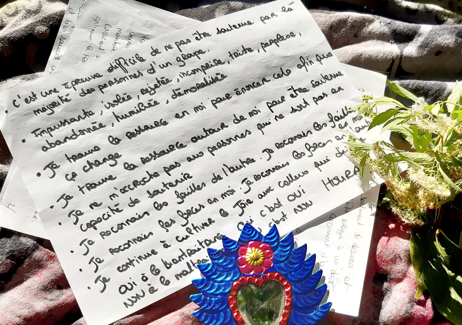 Cela fait aussi écho à ce que me partage un cher ami : « La honte peut commencer à s’apaiser quand on a plus rien à cacher » ainsi qu’à cette parole inspirante de Christiane Singer « Nous sommes en permanence nécessaires à la création quotidienne du monde. Nous ne sommes jamais les gardiens d’un accompli, mais toujours les co-créateurs d’un devenir. »