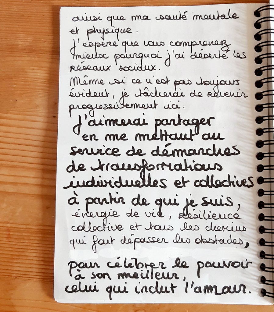 Je publie ce texte plus synthétique sur les réseaux sociaux pour partager un bout de là où j’en suis aujourd’hui :