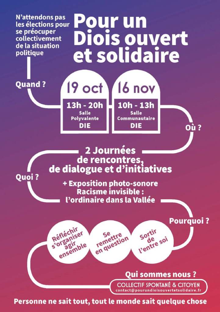 Le mouvement continue, le 16 novembre prochain, de 10h à 13h dans la salle communautaire de l’ESCDD, à Die.