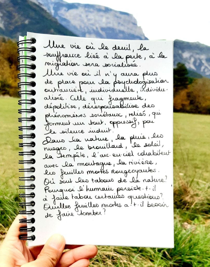 Une vie où le deuil, les traces dans l’esprit et le corps, liées à la perte, à la migration, seraient davantage socialiséees.