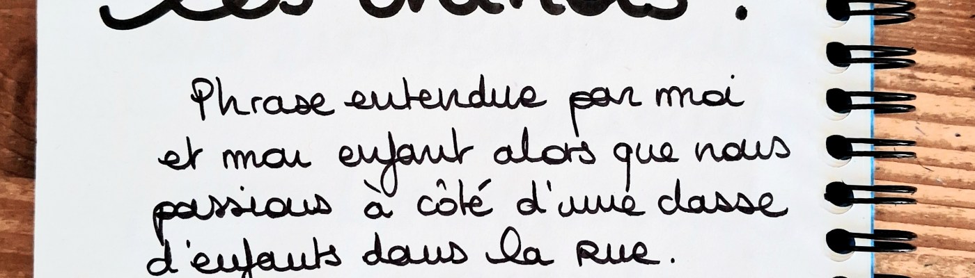 Cette phrase entendue par moi et mon enfant alors que nous passions à côté d’une classe d’enfant dans la rue.