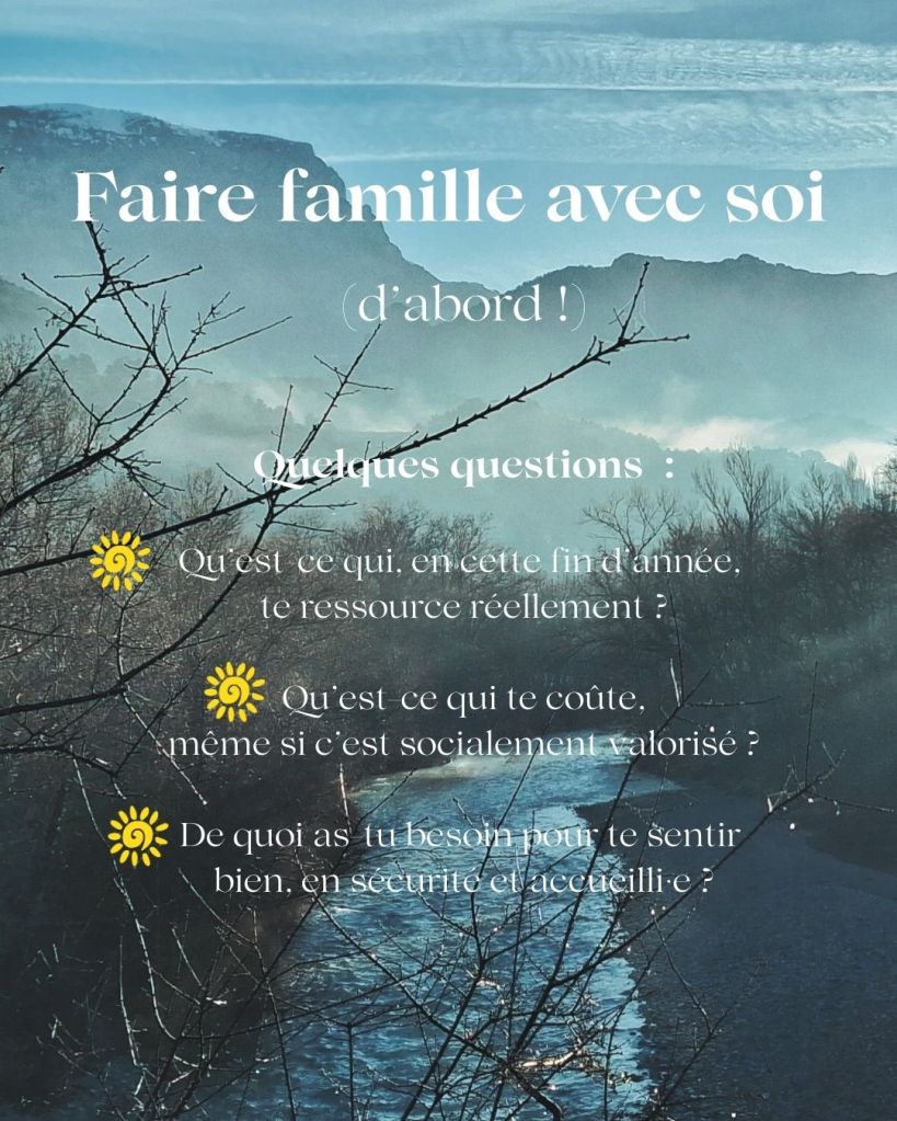 Parce que la fin d’année me réveille régulièrement des sentiments mêlés, parfois douloureux, de manque, d’absence, de pression extérieure ou intérieure, de fatigue, d’élans, de limites, etc…